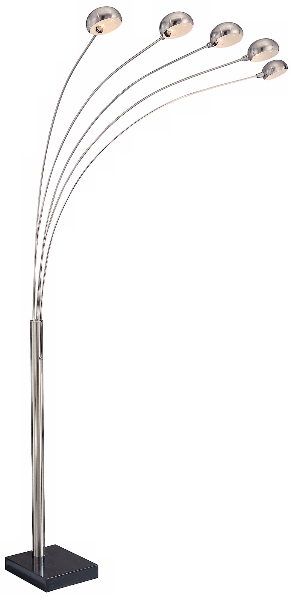With a futuristic inspired curva design the lamp has five adjustable arms with unique domed bulb heads providing maximum light however you prefer.